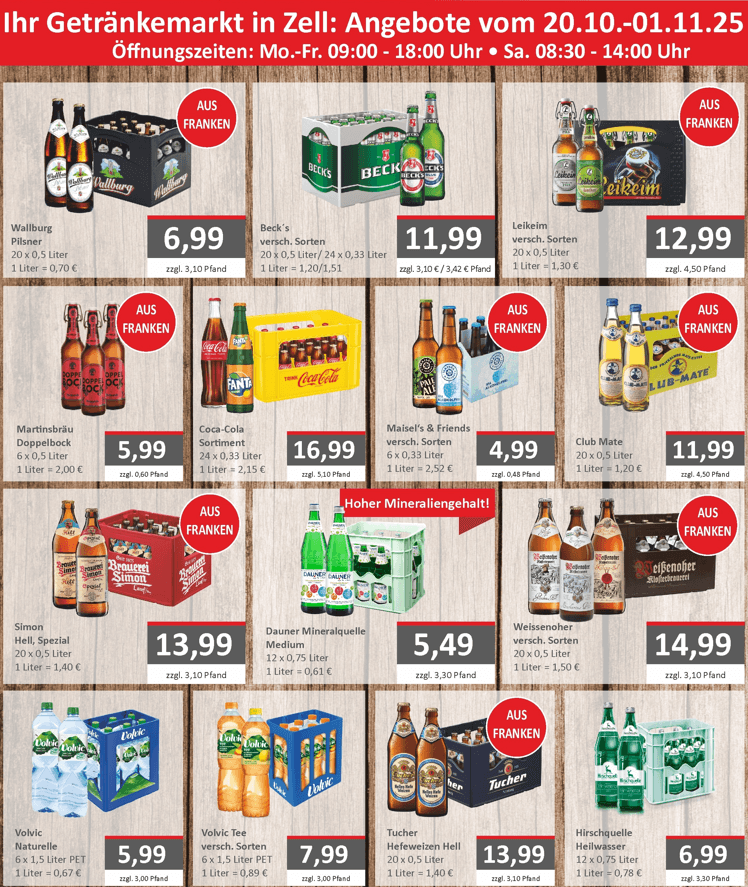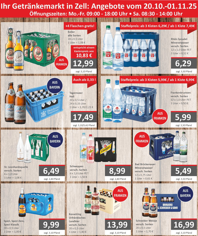 Auch privat können Sie in unserem hauseigenen, gut sortierten Getränkemarkt in der Margetshöchheimer Str. 94 in Zell am Main einkaufen und von unseren attraktiven Angeboten profitieren. Ein Angebotszettel liegt dauerhaft im Getränkemarkt für Sie aus und wird vor Angebotsstart in der Region verteilt. Außerdem finden Sie unsere Angebote immer frühzeitig auf Facebook.